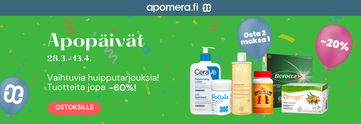 Apopäivät ovat taas täällä - Ale jopa -60%. Tästä kategoriasta löydät kätevästi parhaat tarjoukset. HUOM! Aletuotteita on saatavilla rajoitetusti, joten toimi nopeasti!